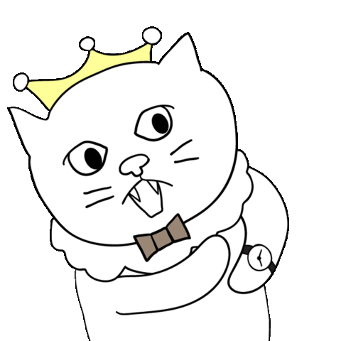 An angry king cat wearing a crown and watch, with the text 'TIME IS UP' appearing, indicating impatience or urgency.