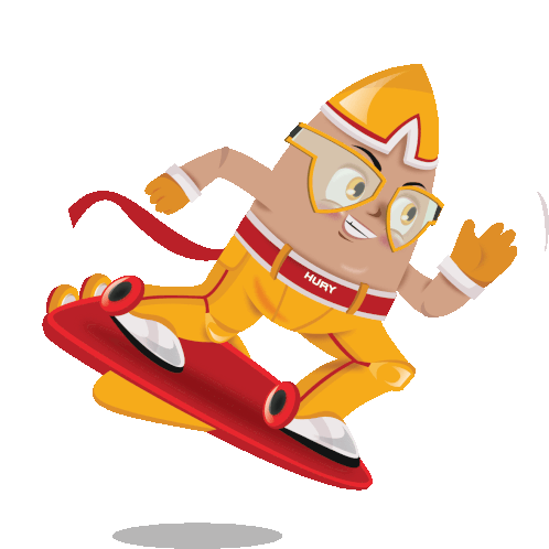 a cartoon character is riding a skateboard and has the name mury on his shirt
