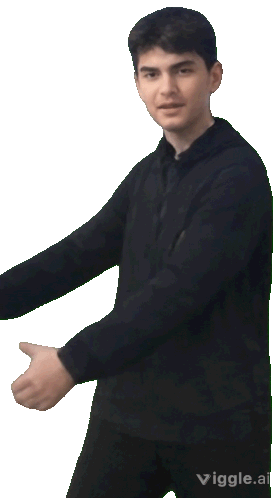 a young man in a black shirt is standing in front of a white background with viggli written on the bottom right