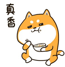 A cute Shiba Inu character happily eats from a bowl, expressing delight with the Chinese caption '真香' (It smells so good).