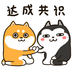 Cute Husky and Shiba dogs hold paws, symbolizing agreement and consensus, perfect for expressing mutual understanding.
