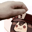 An adorable animated sticker featuring Hutao from Genshin Impact, as a hand gently pets her head, showing affection.