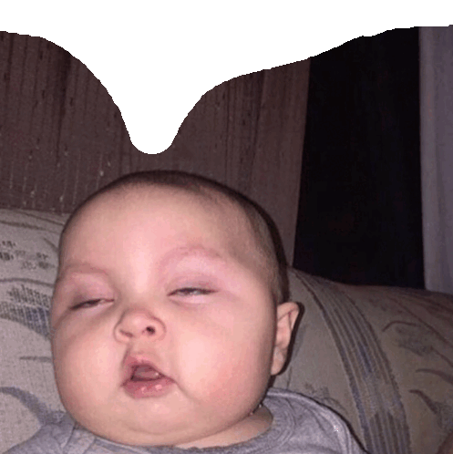 a baby laying on a couch with its eyes closed