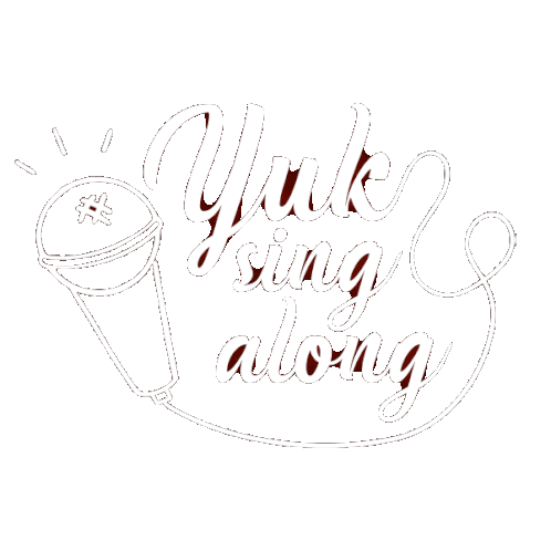 An animated sticker for HWGROUP and Helen, featuring a microphone and the text 'Yuk sing along' (Let's sing along).
