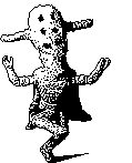 An animated sticker featuring the unique, dithered black and white character, Hylics Dracula, in a distinctive pose.