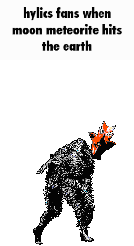 A pixelated character, Pongorma from Hylics, performs a distinctive dance in a humorous meme format.