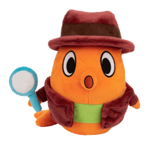 a stuffed animal with a magnifying glass and a hat on