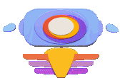 A retro pixel art object from Hypnospace Outlaw spins, featuring blue, orange, and yellow colors in a distinct Y2K style.