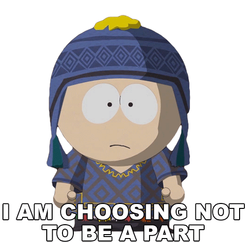 Craig Tucker from South Park says 'I am choosing not to be a part of this anymore' with changing facial expressions.