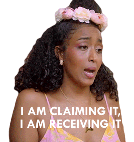 a woman with a flower crown on her head says i am claiming it and i am receiving it