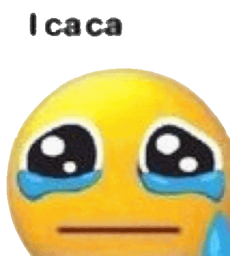 a yellow smiley face with tears coming out of its eyes and the words `` i caca '' below it .