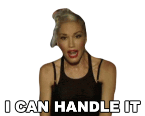 Gwen Stefani confidently states "I Can Handle It" with a determined expression, showcasing her assertive attitude.