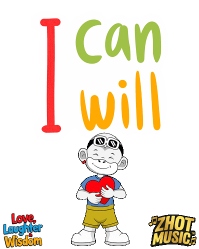 a cartoon of a boy holding a heart with the words " i can i will " above him