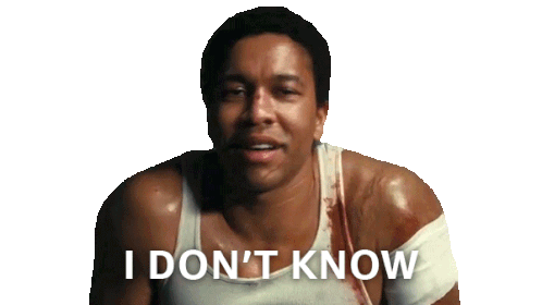 Maximus in a white tank top shrugging and saying "I don't know" with a confused expression.
