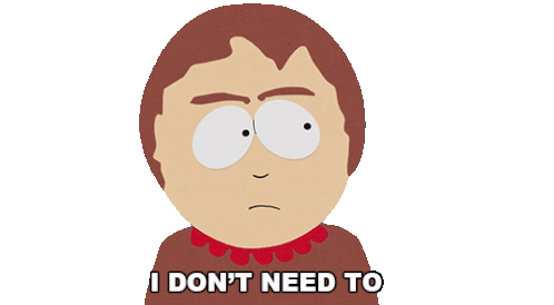 Sharon Marsh from South Park emphatically states "I DON'T NEED TO," expressing defiance or refusal.