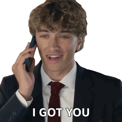 a man in a suit and tie talking on a cell phone with the words " i got you " written below him
