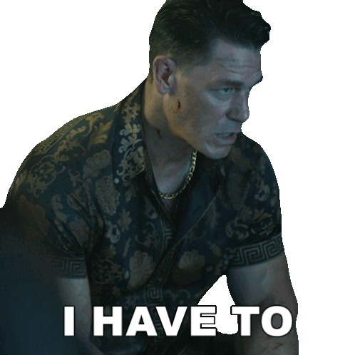 a man in a floral shirt says " i have to "