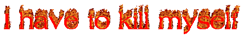 An animated sign displaying 'I HAVE TO KILL MYSELF' with flames, representing the 'KMS' meme.