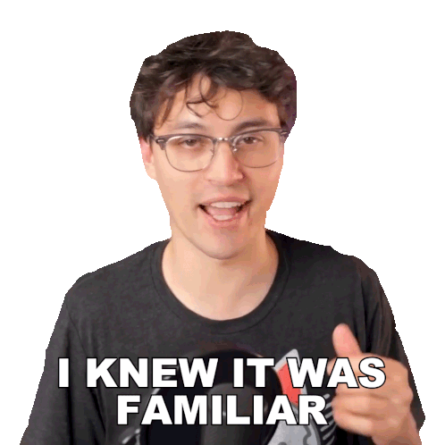 Hunter Engel expresses recognition with the phrase 'I knew it was familiar' in this animated sticker, perfect for moments of déjà vu.