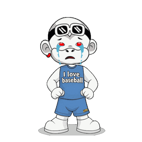 a cartoon character wearing a blue shirt that says i love baseball