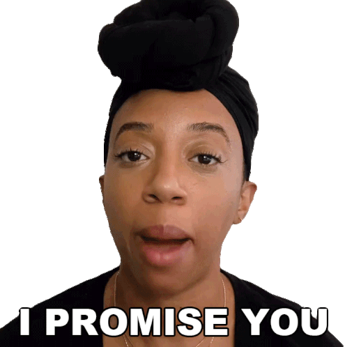 Mimi D, wearing a black head wrap, looks directly at the camera and says "I Promise You" with a sincere expression.