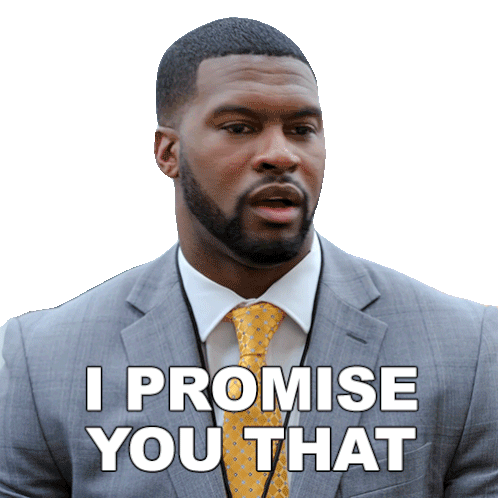 Tony, a man in a suit and tie, confidently states 'I PROMISE YOU THAT', conveying assurance and commitment.
