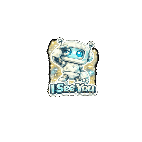 a sticker that says i see you with a robot