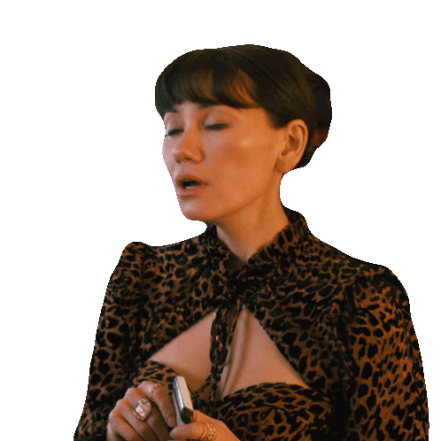 Chloe, played by Vanessa Matsui, expresses surprise with the caption 'I thought I told you not to shave' while wearing a leopard print top.