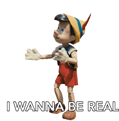 Pinocchio, the wooden puppet, expresses his heartfelt wish to be a real boy with the caption "I Wanna Be Real".