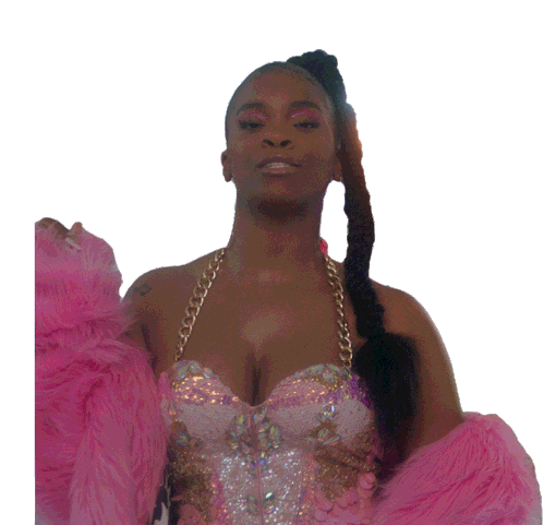 Ari Lennox poses fiercely in a sparkling pink corset and a fluffy pink fur coat, embodying the 'I Wanna Grow With You' vibe.