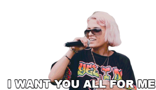 Dora Salvatore sings "I Want You All For Me" into a microphone, making a possessive gesture with her middle finger.