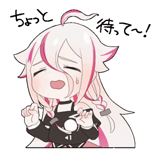 a cartoon drawing of a girl with long white hair and pink highlights