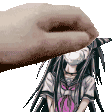 A pixel art animation of Ibuki Mioda from Danganronpa receiving a gentle head pat from a hand.