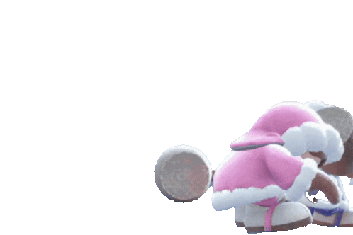 a cartoon character in a pink and white outfit is flying through the air next to another character