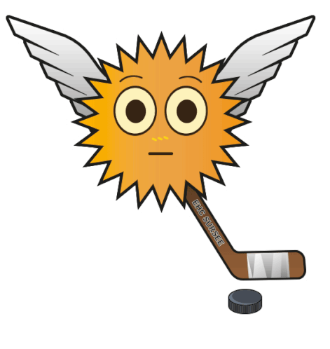 A cute, winged sun mascot playing ice hockey with a stick labeled 'EHC Sursee' and a puck.