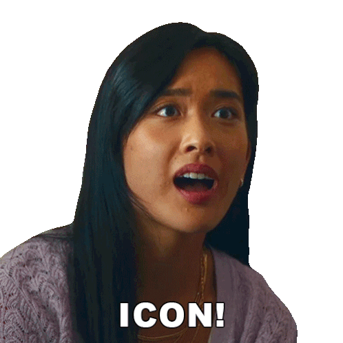 A woman with a surprised expression reacts with the word 'ICON!' appearing on screen, conveying admiration or excitement.