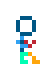 A pixel art key-like figure performs an idle animation, bouncing gently with colorful blocks.