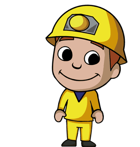 A cheerful Idle Miner Tycoon (IMT) character jumping happily with a big smile, outstretched arms, a rainbow, and a sun.