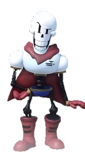 papyrus from undertale is wearing a red cape and boots and holding a bowl of food .
