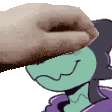 An animated sticker featuring Ike Lizard, a cute scaly femboy character, being gently petted by a hand.