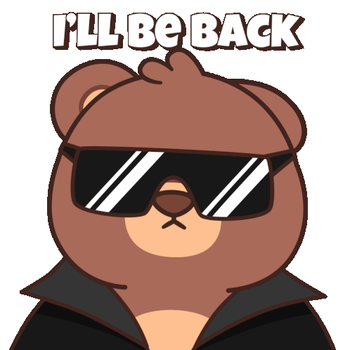 a cartoon bear wearing sunglasses and a jacket says " i 'll be back "