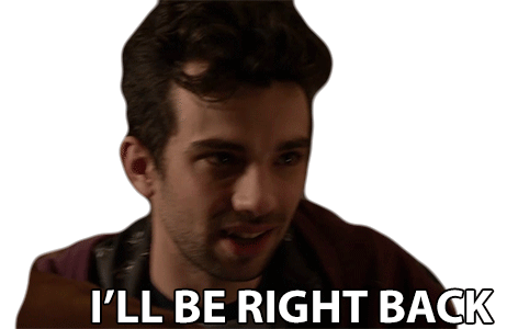 Jay Baruchel from This Is The End says 'I'll be right back' with a slight smile, indicating a temporary departure.