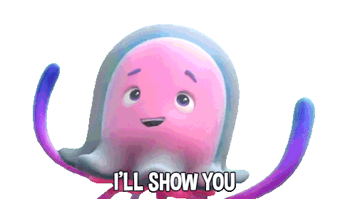 Pink and purple cartoon character Jerry says 'I'll show you' with a determined expression.