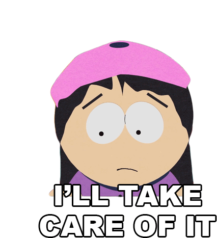 Wendy Testaburger from South Park with a determined expression, stating 'I'll take care of it'.