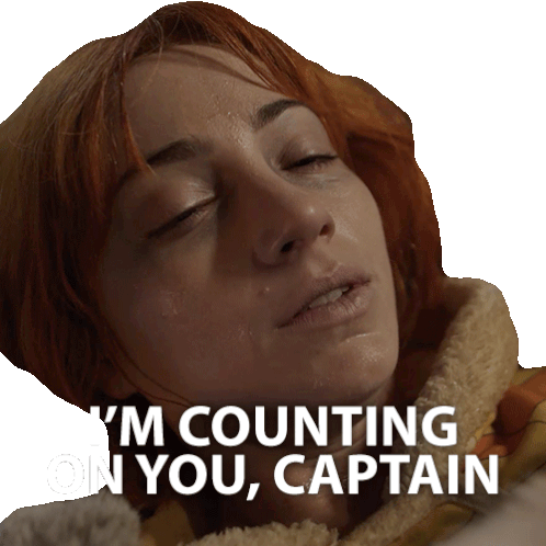 a close up of a woman 's face with the words i 'm counting on you captain
