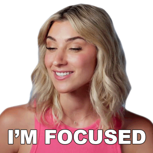 Sarah Curd from The Real Love Boat declares 'I'm Focused' with a confident expression in this animated sticker.