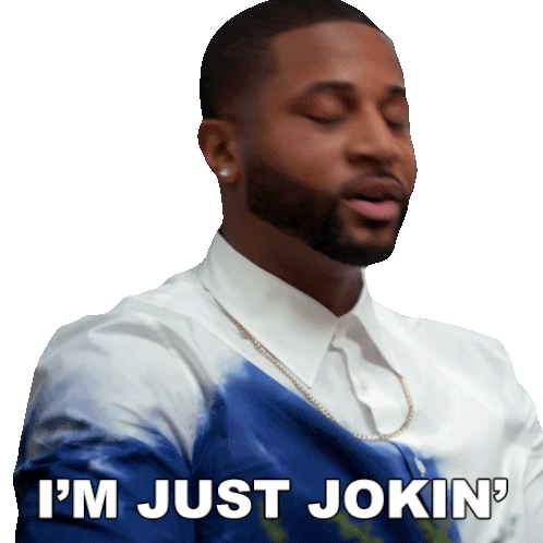 Zac, played by Devale Ellis, smiles and says 'I'm just jokin'' in this funny reaction sticker from BET's Sistas.
