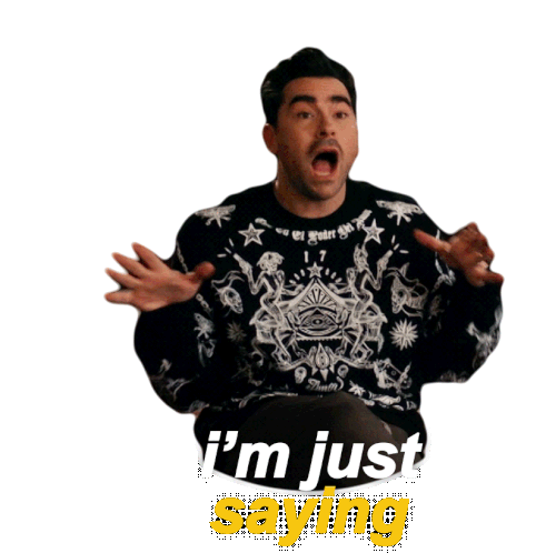 David Rose from Schitt's Creek, played by Dan Levy, expresses his opinion with a shrug and the caption 'I'm just saying'.