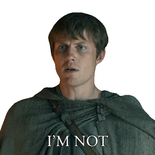 a man in a cape says " i 'm not " on a white background