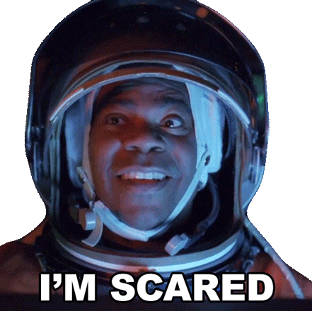 Tracy Jordan, played by Tracy Morgan, in an astronaut helmet with a wide-eyed, scared expression and the text "I'M SCARED".